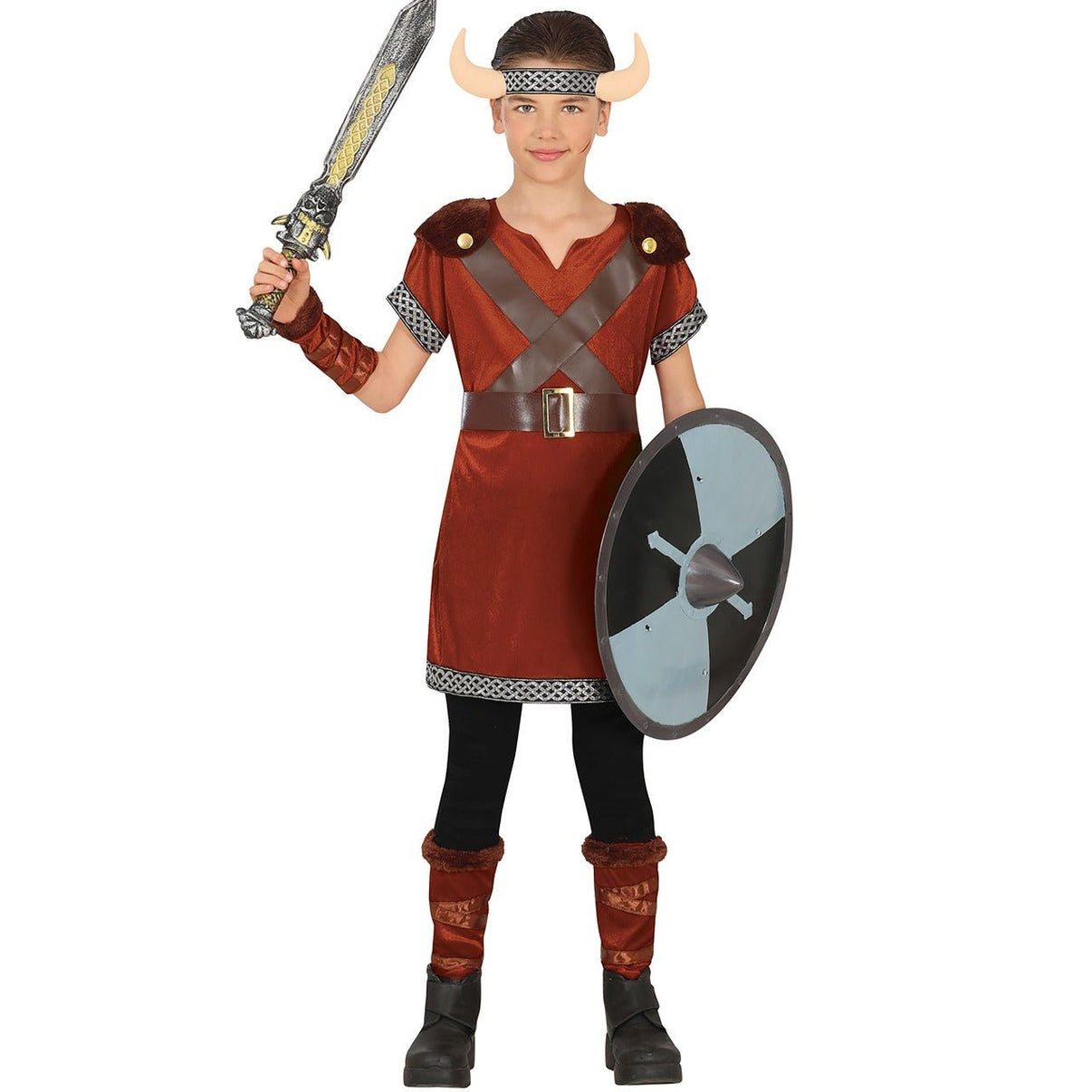 Costume da vichingo guerriero per bambini per godersi il carnevale e le feste vichinghe. Se vuoi essere il più audace e barbaro, scegli di vestirti da vichingo. Non dimenticare il tuo inseparabile corno, la tua spada e il tuo scudo con cui vincerai nelle tue battaglie più bellicose. Acquista ora e ricevi in 24/48 ore, con una garanzia di rimborso.